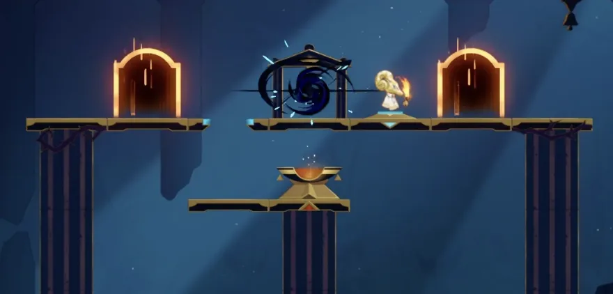 The second Golden Scapegoat puzzle in Aedes Elysiae lies northwest of the Sacrament Courtyard Space Anchor. To get there, utilize the Sacrament Courtyard Space Anchor, then journey north, west, and north once more. When you arrive at the Golden Scapegoat puzzle, follow these steps to solve it: