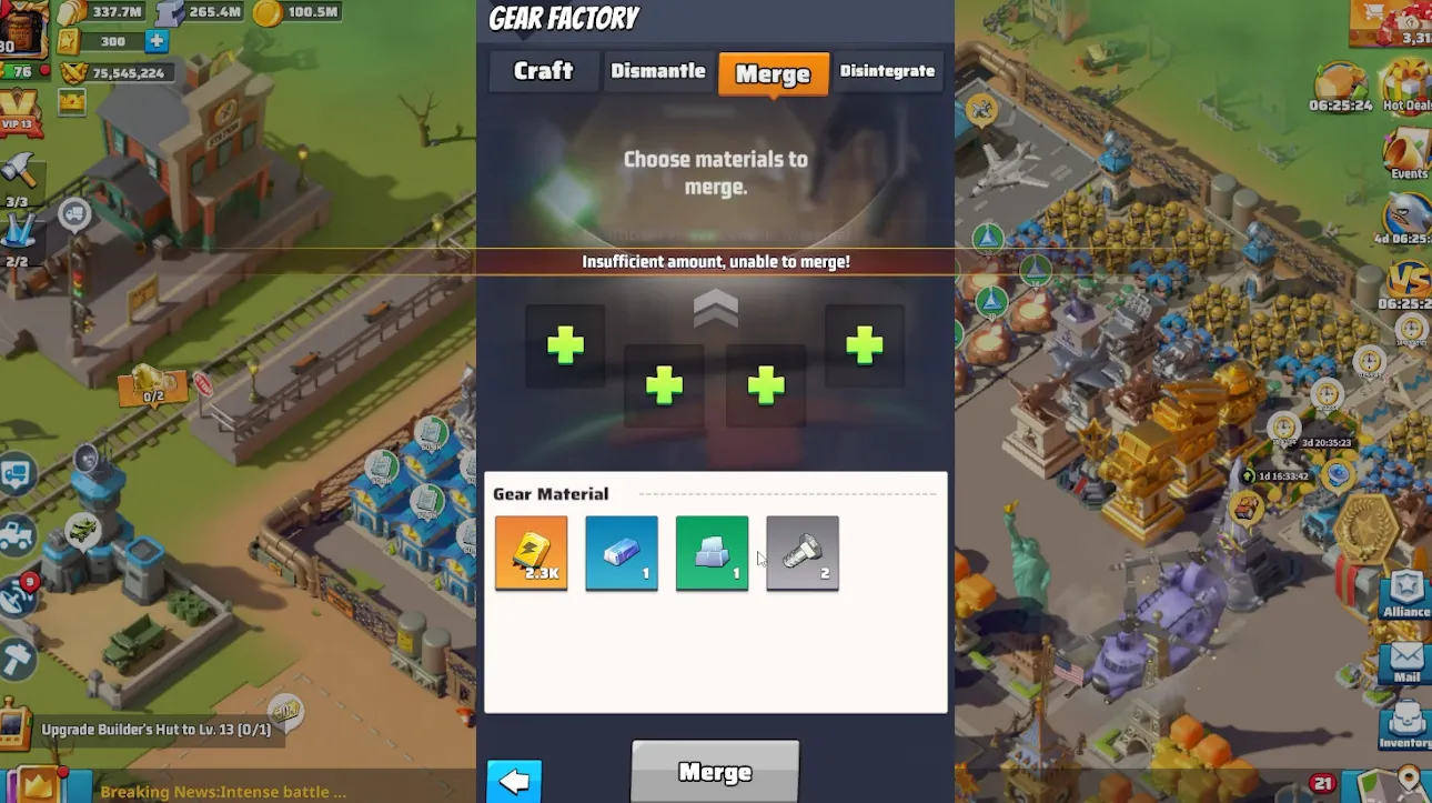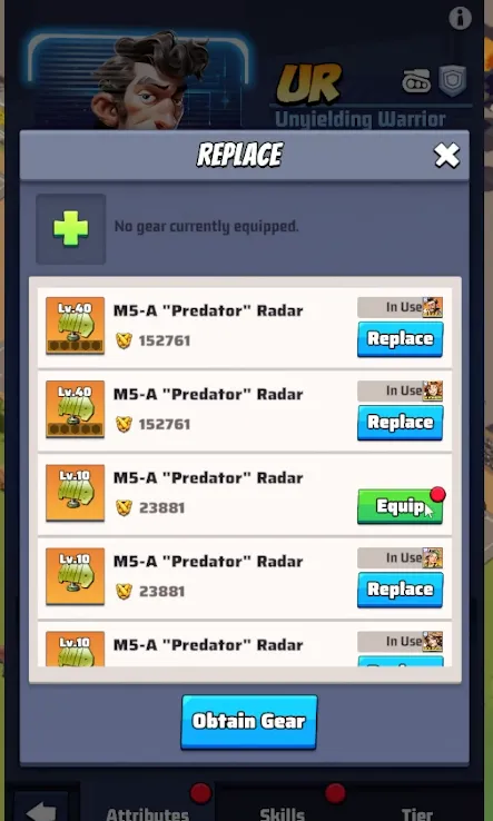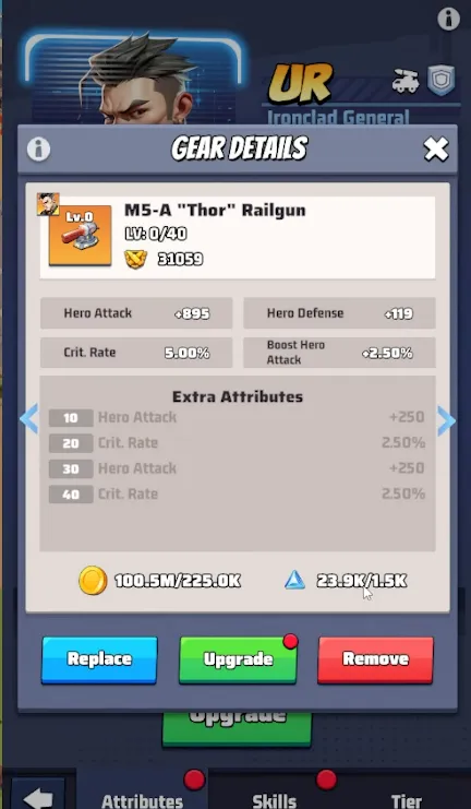 • Strategy: Dismantle all your Green, Blue, and Purple gear. Use the materials to Merge them upwards until you create Orange (UR) Gear. The stat difference between Purple and Orange is massive (over 700 attack points difference on a weapon).