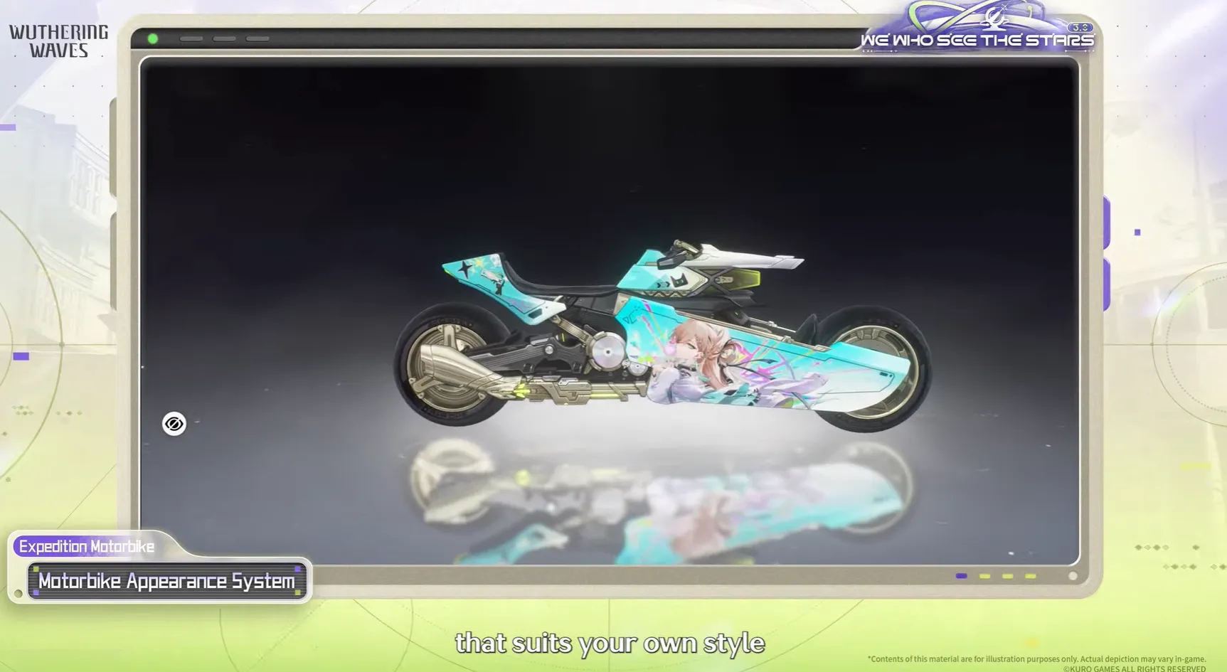 The bike sits alongside the glider and grapple as a permanent traversal tool, with a first-person view option if you want to go full arcade racer across the snowfields. Think “Breath of the Wild DLC bike”, but tuned to WuWa’s painterly sci-fi style – great for speeding between Startorch facilities or just joyriding in free roam.